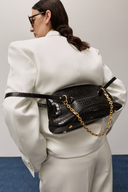 We’re starting with three foundational styles, each designed to move with you from day to night. They consider not just form, but what your day might demand. The Patina is our largest silhouette, a structured tote that fits your laptop, daily essentials, and even your child’s toys. Inside, a removable clutch transforms into a standalone piece, giving you a 2-in-1 design built for rhythm and transition. The Curve aligns most closely with current handbag trends—a clean bowling silhouette with sculptural edge that easily shifts from office to evening. The Strata is our most versatile design, composed of three modular pouches that can be reconfigured in over five ways by mixing straps or detaching elements.