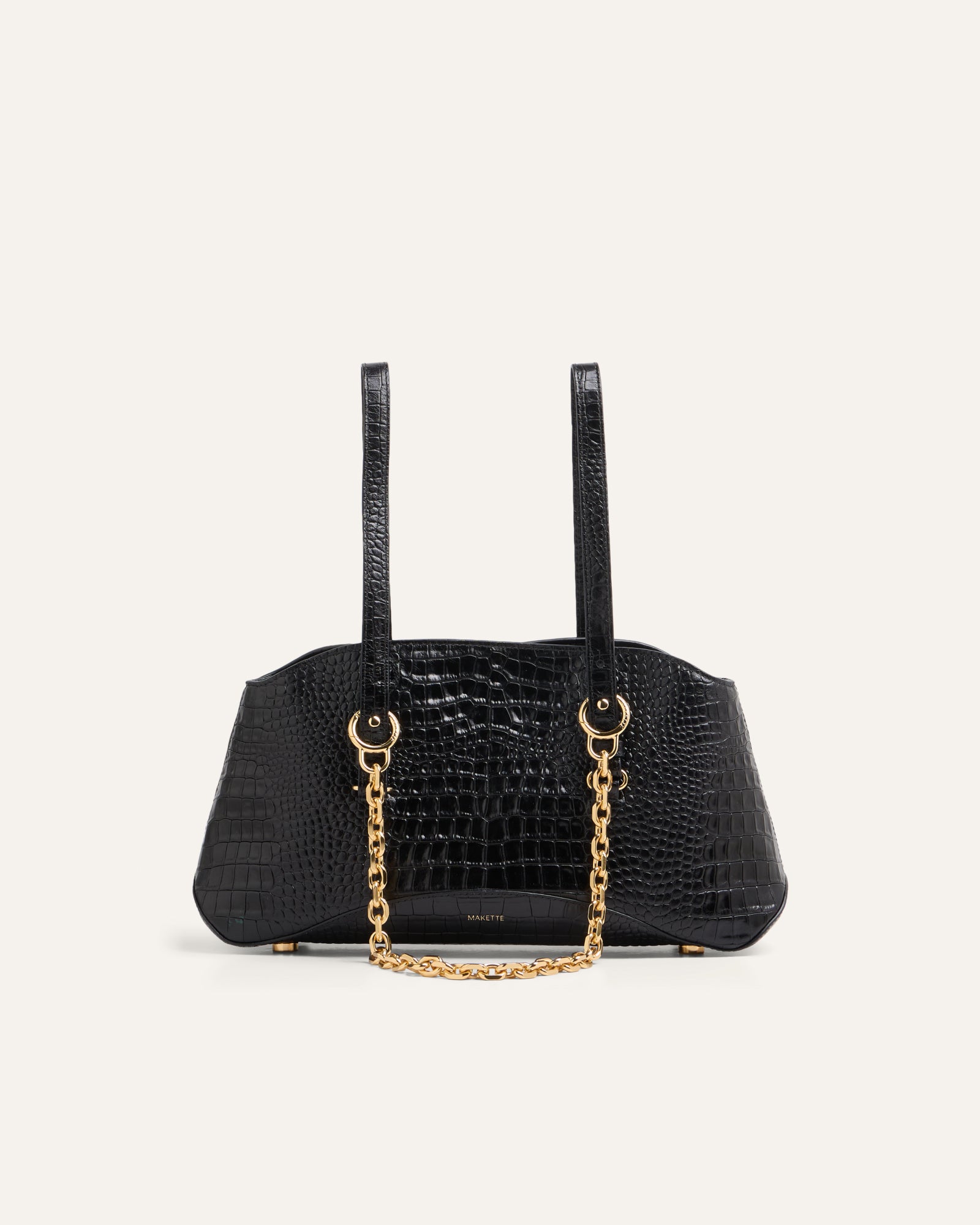 The Curve is MAKETTE’s sculptural bowling bag, defined by its softened architecture and graphic play on geometry. Designed to hold structure while offering movement, it transitions from a wide top curve into a compact base that hugs the body. A detachable chain adds another layer of expression — wear it on the shoulder, hold it by hand, or let it drop as a sculptural accent that anchors your everyday essentials. Built for versatility and part of our modular system, The Curve adapts to the rhythm of your day.
