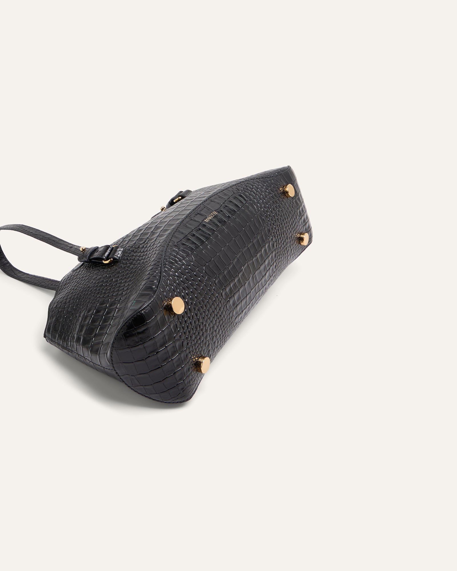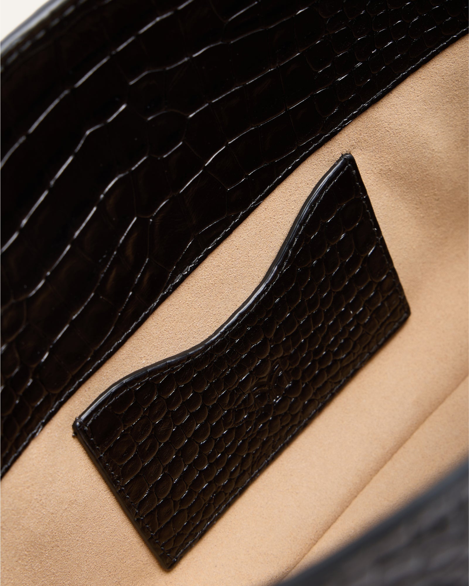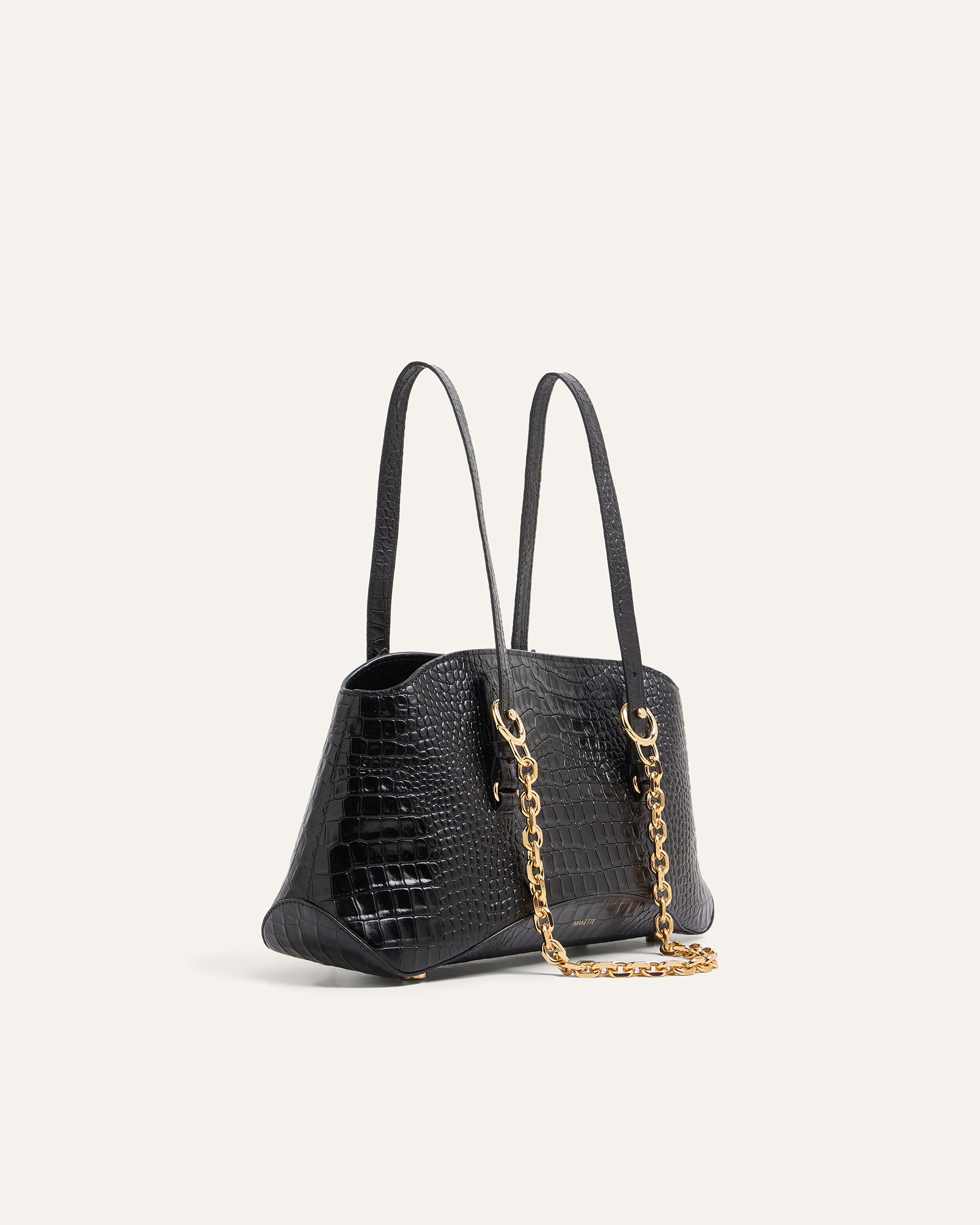 • Detachable gold-plated chain strap — wear on the shoulder or drop as a sculptural charm to hold keys or small attachments