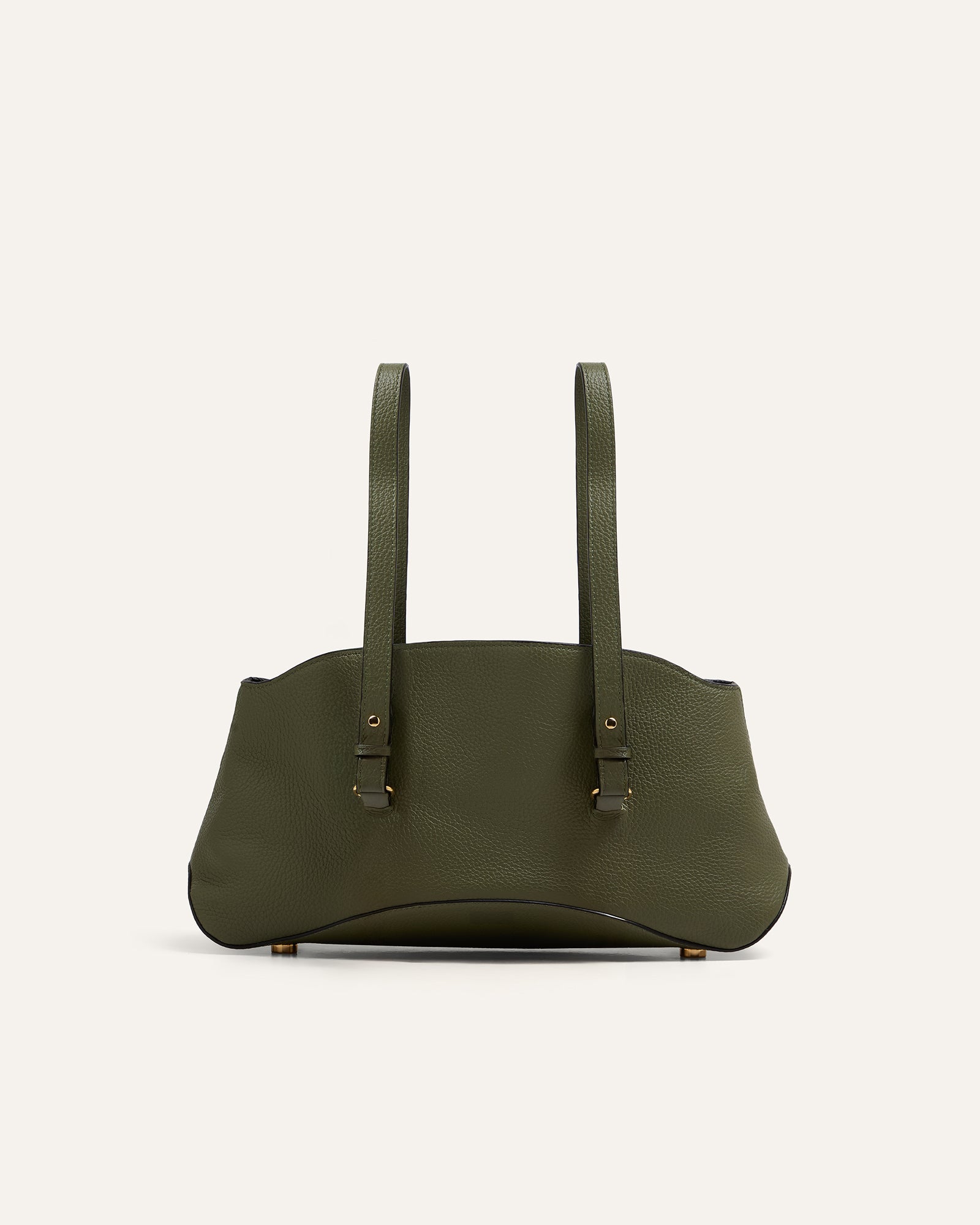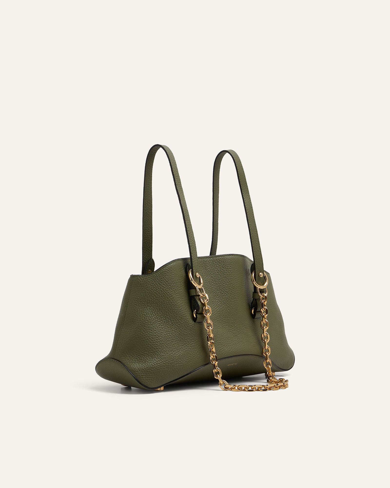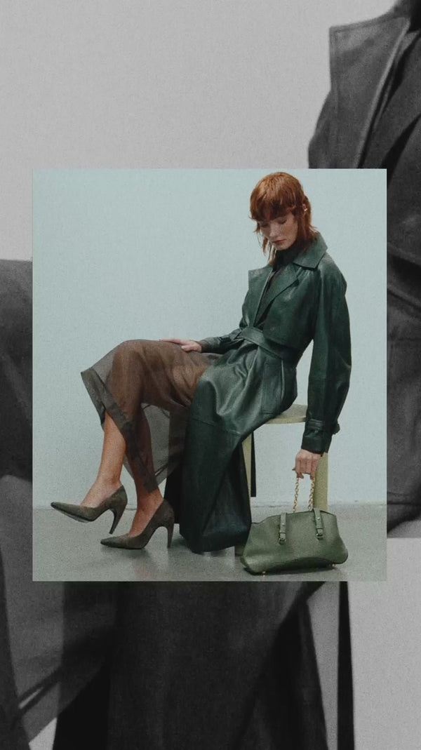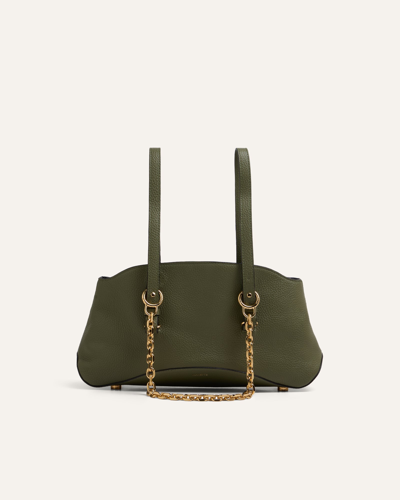 The Curve is MAKETTE’s sculptural bowling bag, defined by softened geometry and subtle tension between structure and movement. This version is crafted in Adria — a structured pebbled leather that balances grain with gentle flexibility. The Curve transitions from a wide, arched silhouette into a compact base that hugs the body. A detachable chain adds modularity. It can be worn as a shoulder strap, held by hand, or left to fall as a sculptural anchor for keys or accessories.