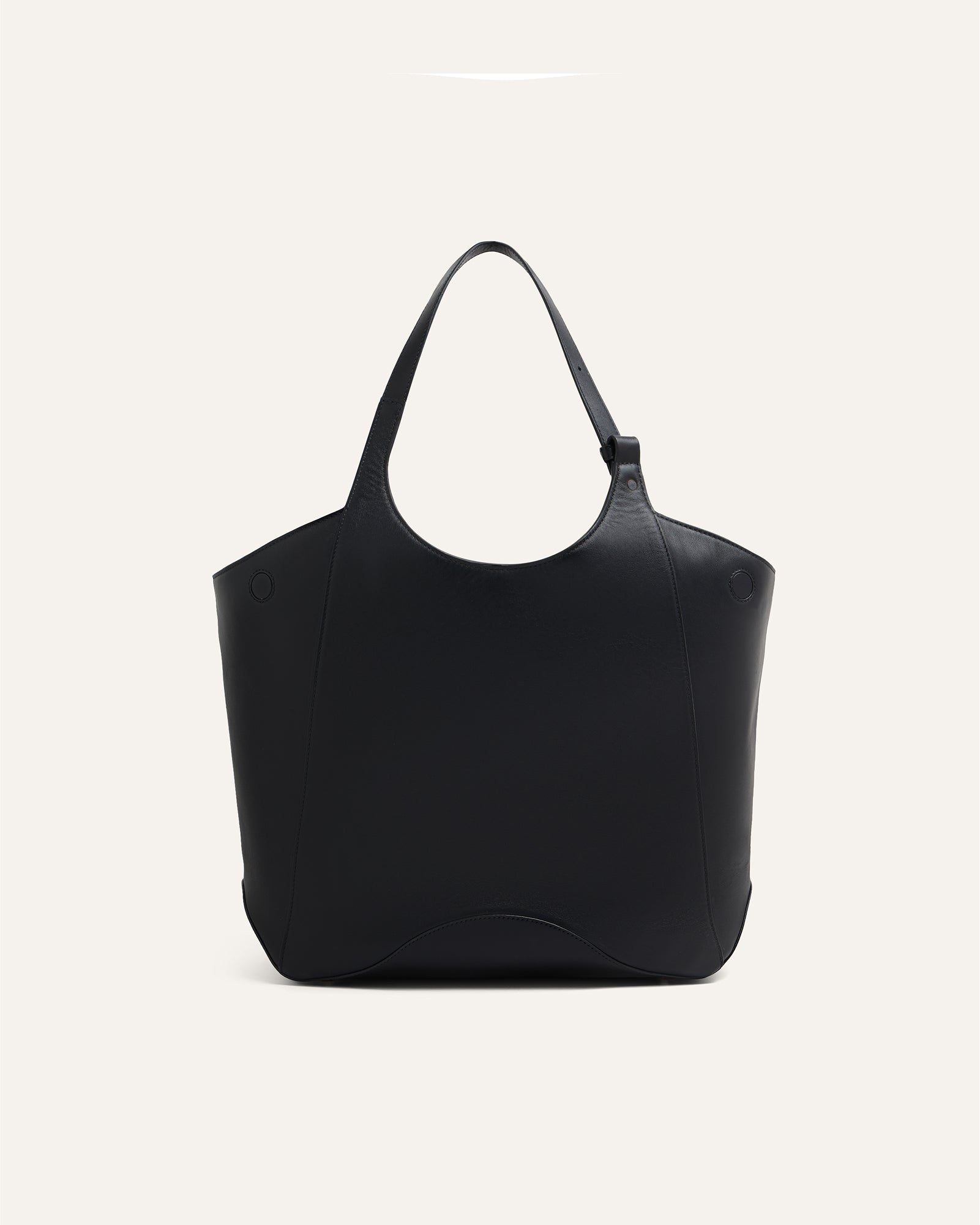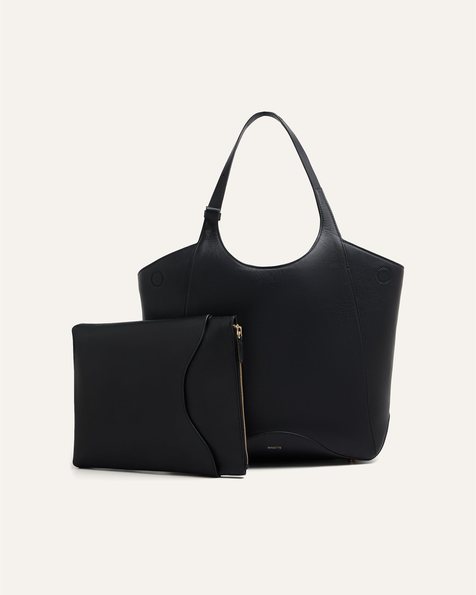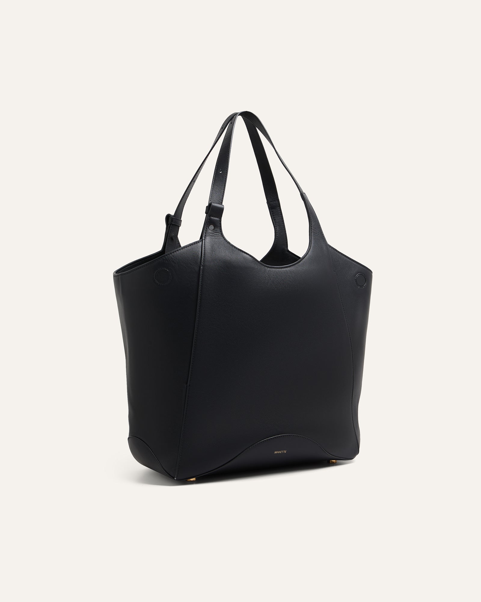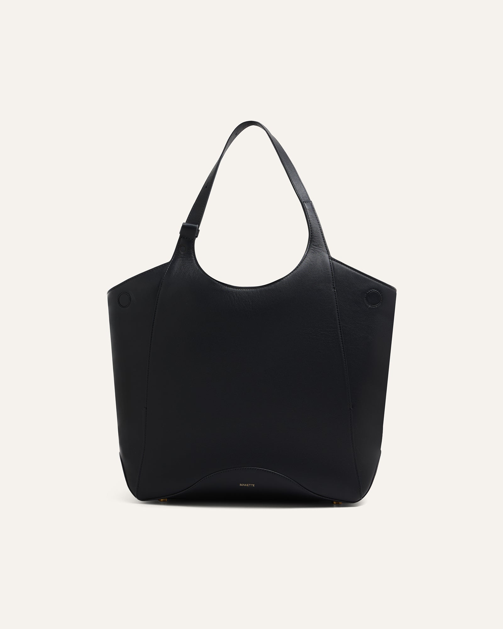 The Patina is MAKETTE’s foundational tote, an exploration of volume, clarity, and structure. Composed of two elements, it pairs a spacious architectural tote with a sculptural clutch that sits securely inside. The clutch is not fixed, allowing it to be carried independently. Hidden loops on the clutch enable transformation into a crossbody using any compatible strap or the chain from The Curve or The Strata. Designed for modularity, this 2-in-1 system moves fluidly between form and function.