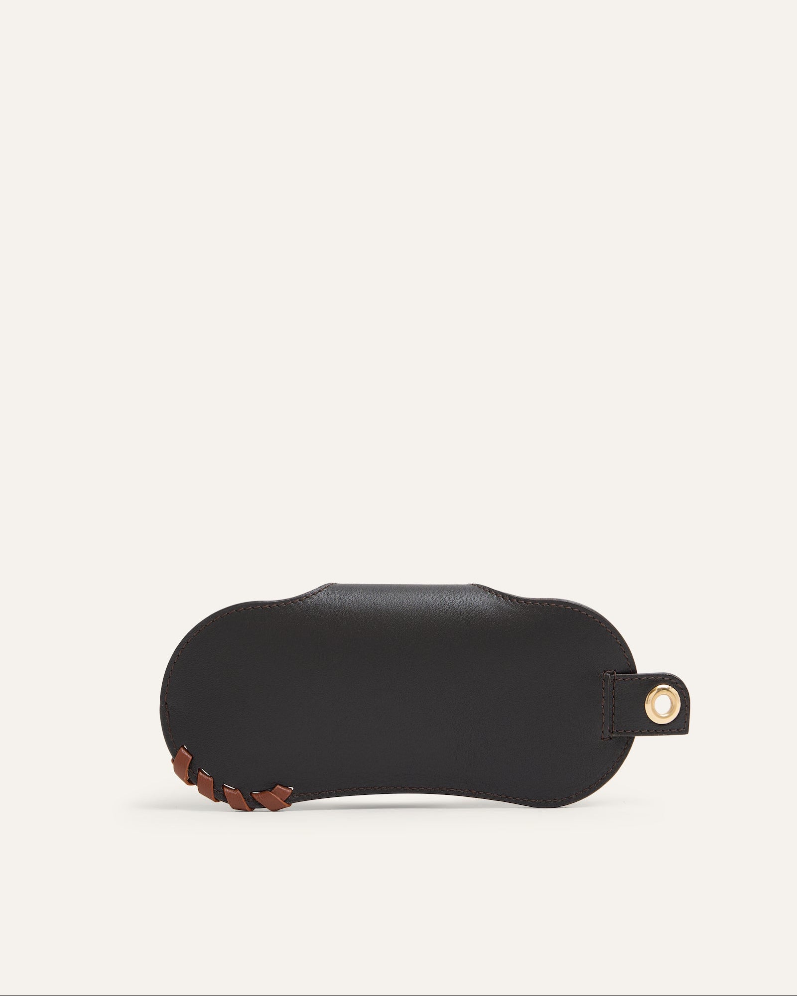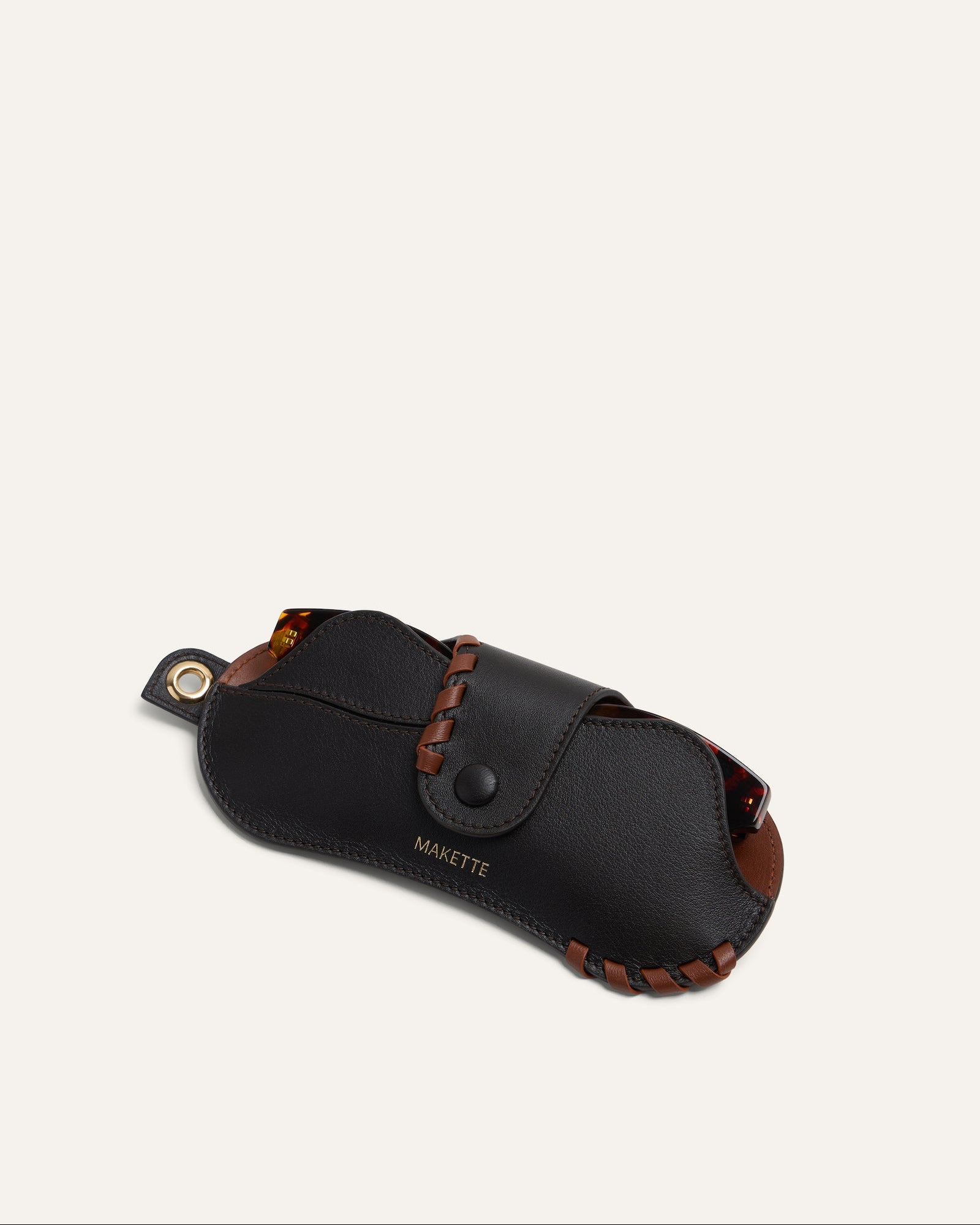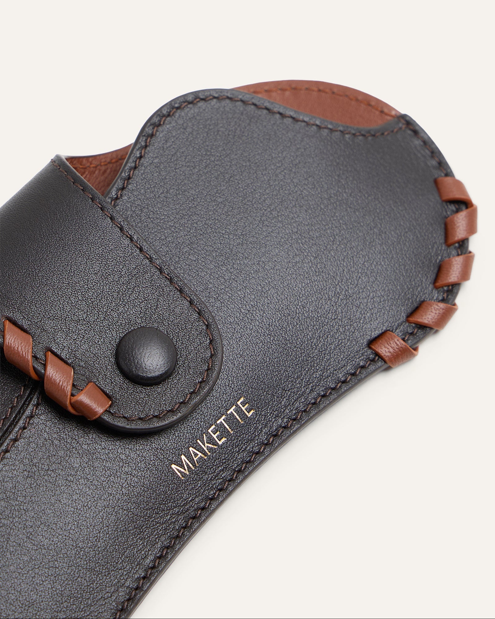 The Cast is structure refined, shaped to fit and protect without bulk. Its silhouette mirrors the flow of MAKETTE’s handbags, while the whipstitched spine echoes bamboo basketry—firm yet flexible, decorative yet functional. The leather loop allows for attachment or ease of access, creating a quiet container that balances softness with intention.